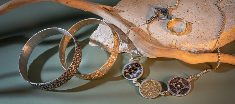 In 2019 I undertook an artist residency in India, where I learnt the ancient craft of enamelling (technique of applying glass to metal). This has led to my recent range of colourful enamel jewellery.