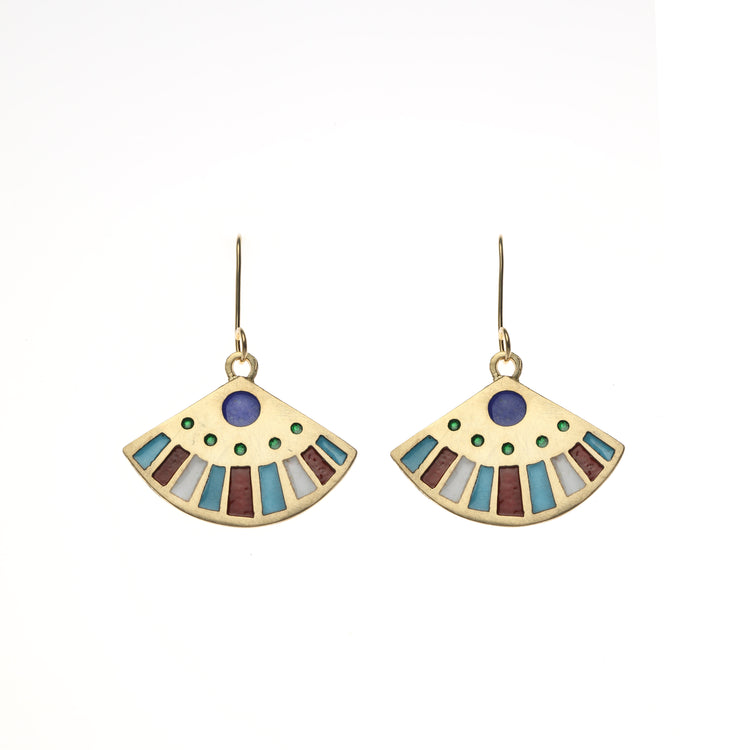 Enamel fan earrings with gold